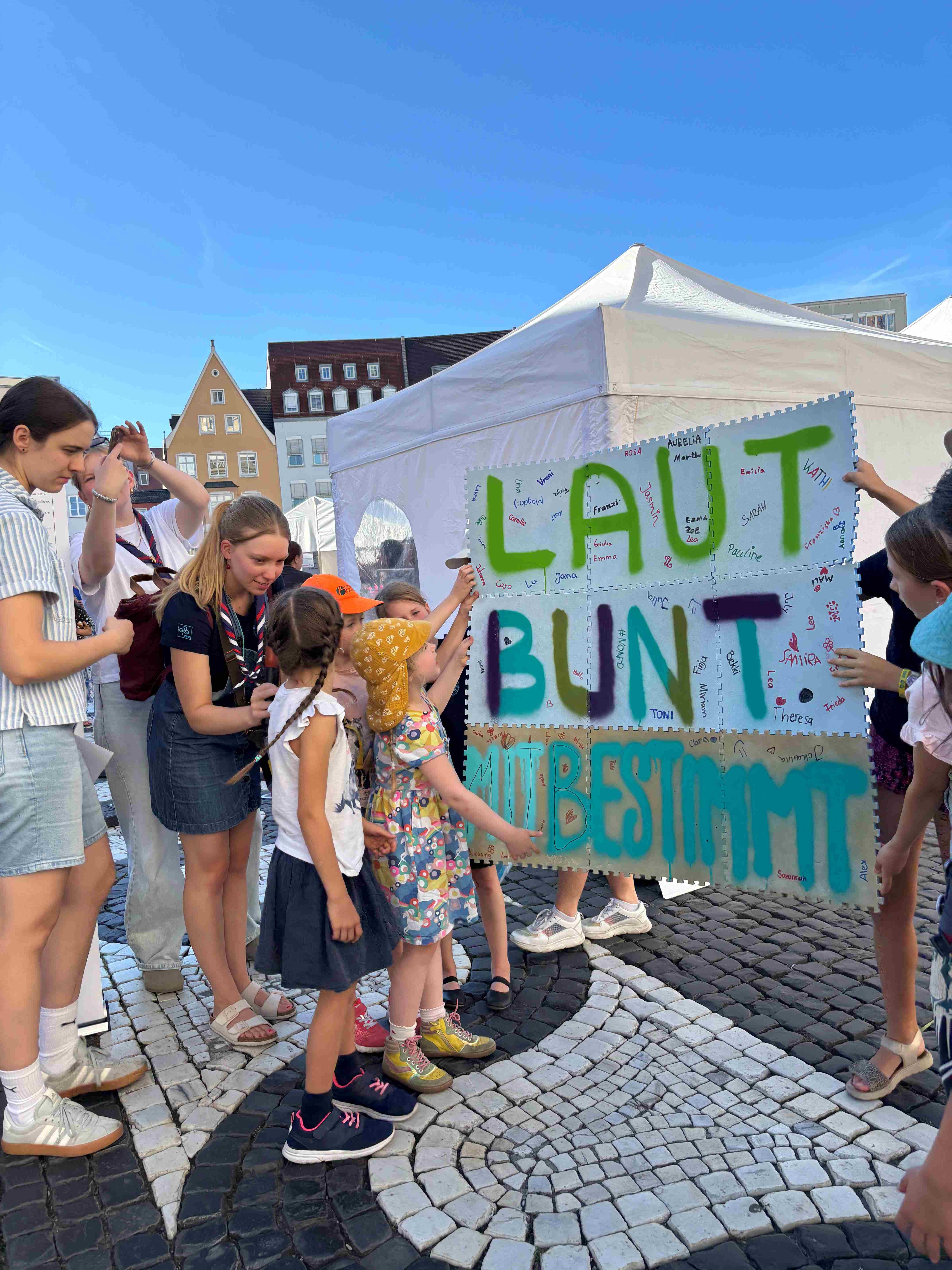 Nachmittags gab es ein buntes Fest zum Weltkindertag und die Möglichkeit eine Schnitzeljagd oder einen Actionbound durch Augsburg zu machen.