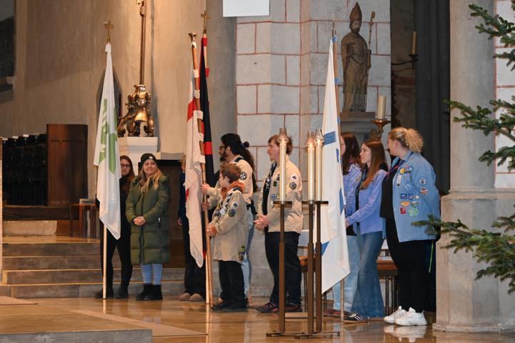 Pfadfinderinnen vom Stamm Krumbach holten das Licht in Linz ab und brachten es nach Augsburg. Der Gottesdienst, unter dem Motto „Ein Funke Mut“, wurde von der Stadtgruppe Augsburg gemeinsam mit der Kuratin Steffi, gestaltet. Dabei wurde Ambrose Redmoon zitiert: „Mut ist nicht die Abwesenheit von Angst, sondern die Entscheidung, dass etwas wichtiger ist als die Angst.“