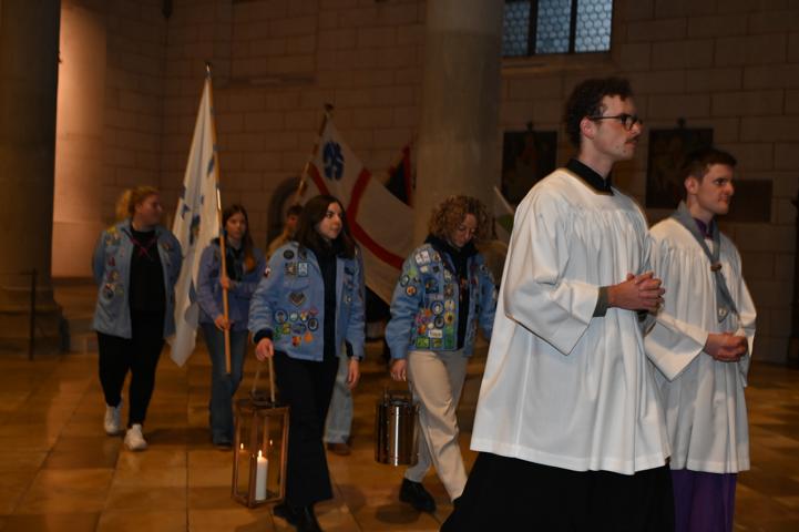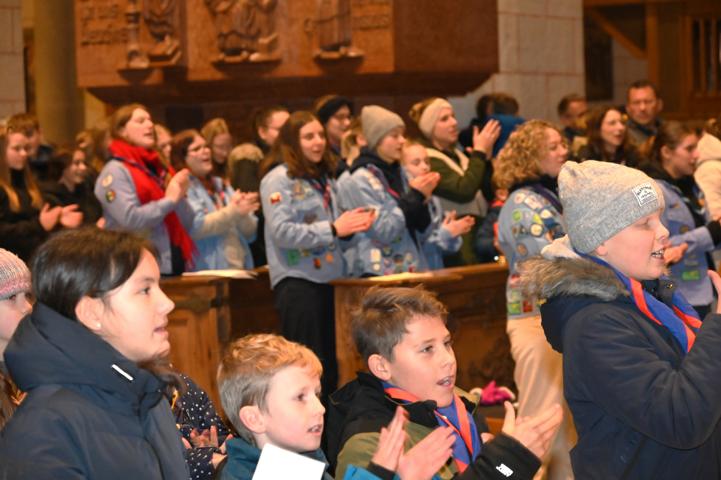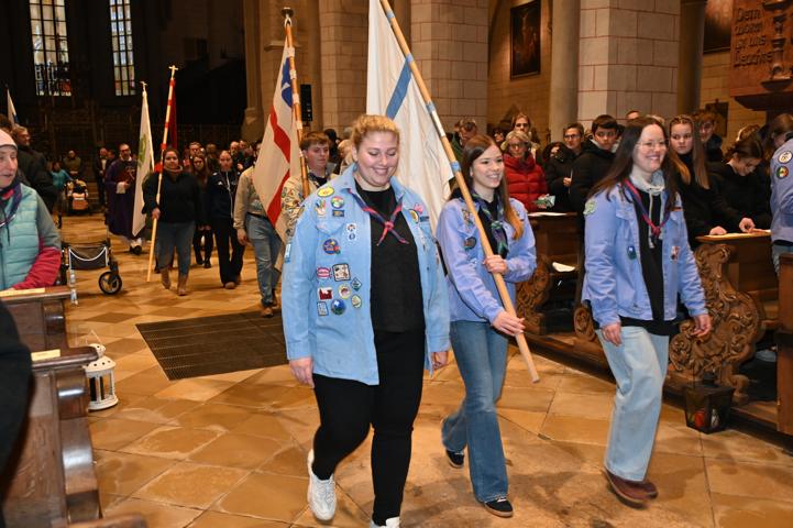 Unter der Leitung von P. Christoph Lentz SAC und Mitzelebrant Domvikar Dominik Zitzler, beide ehemals Präses des BDKJ (Bund der Deutschen Katholischen Jugend) im Bistum Augsburg wurde ein lebendiger Gottesdienst in einem mit jungen Menschen gut gefüllten Dom gefeiert. P. Lentz ermutigte die Pfadfinderinnen und Pfadfinder, weiterhin ein mutiges Signal in Kirche und Gesellschaft zu setzen. Er dankte den jungen Menschen sowie allen katholischen Jugendverbänden für dieses Engagement und forderte sie - als Teil der Kirche - auf, sich weiterhin für Demokratie und gegen faschistische Tendenzen einzusetzen.